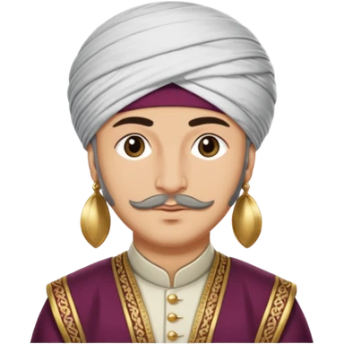 Fatih Sultan Mehmet, Ottoman sultan, wearing a turban and traditional robes, regal and wise expression emoji
