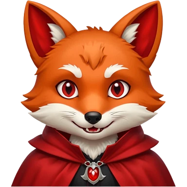 Vampire animal, fox in red collar cloak, red eye, fang emoji