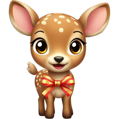 white fawn with pale pink lace ribbon and pale pink christmas hat emoji