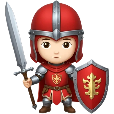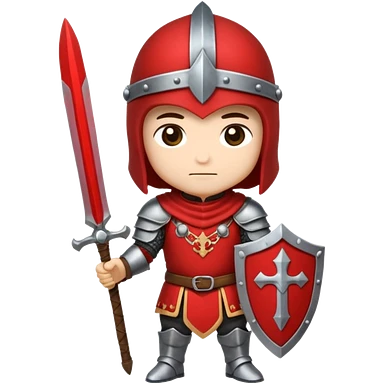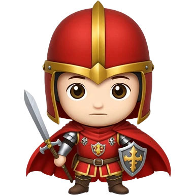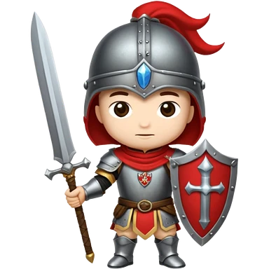 Um guerreiro estilo chibi/cartoon, vestindo armadura prateada brilhante, com capacete medieval e um penacho vermelho no topo. O personagem faz uma cara sério, chocado " :| ". O fundo é preto, destacando bem o personagem. emoji