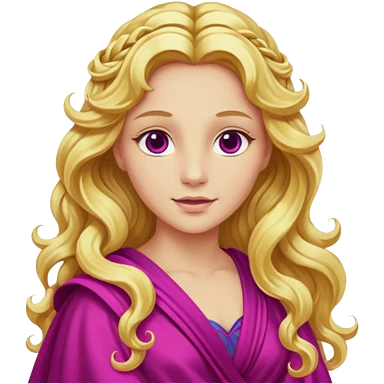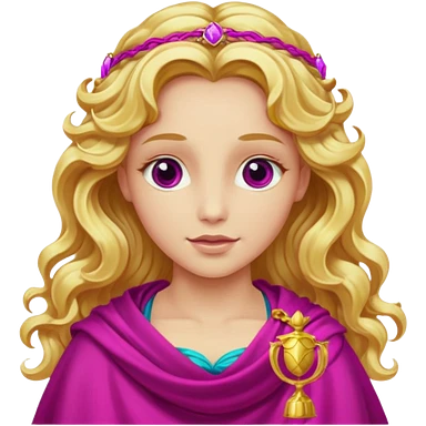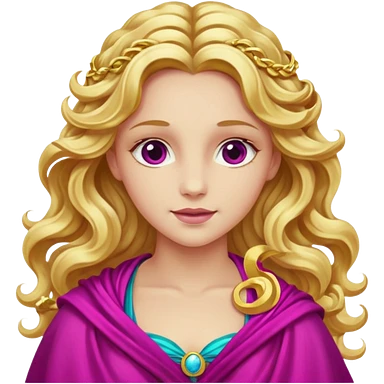 Venus from The Olympians with long golden blonde wavy hair, magenta stola emoji