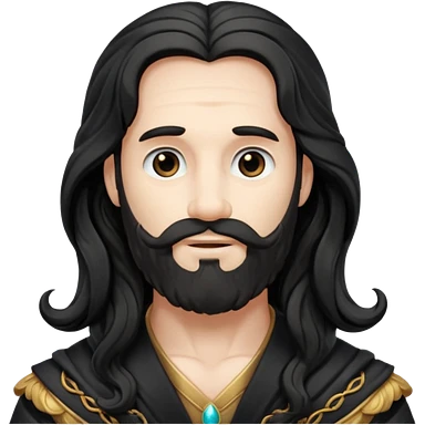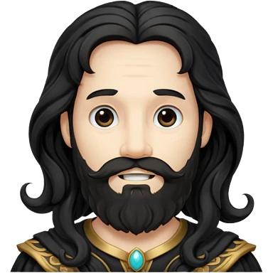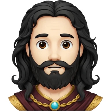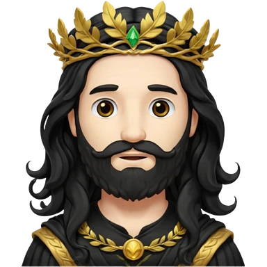 Pluto from The Olympians with long black wavy hair and beard, black stola emoji