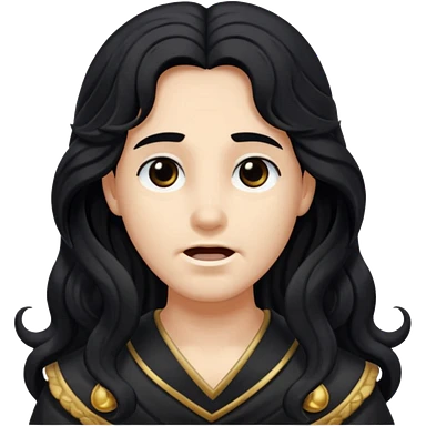 Pluto from The Olympians with long black wavy hair, black stola emoji