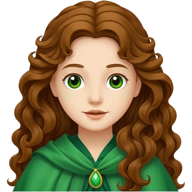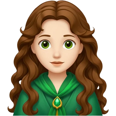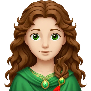 Juno from The Olympians with long brown wavy hair, green stola emoji