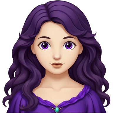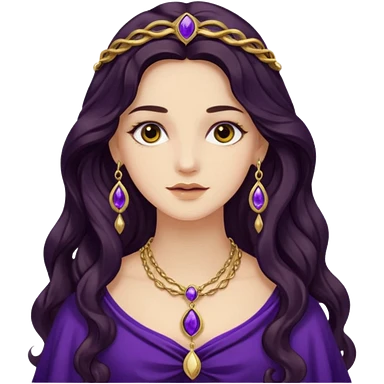 Proserpina from The Olympians with long dark brown wavy hair, dark purple stola emoji