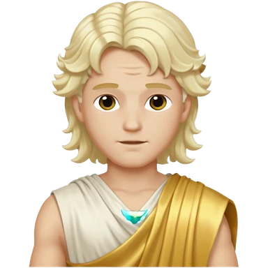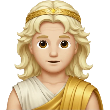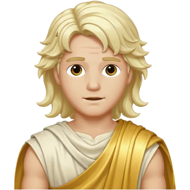 Apollo from The Olympians with long platinum blonde wavy hair, gold toga emoji