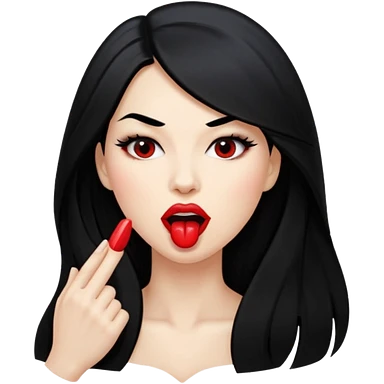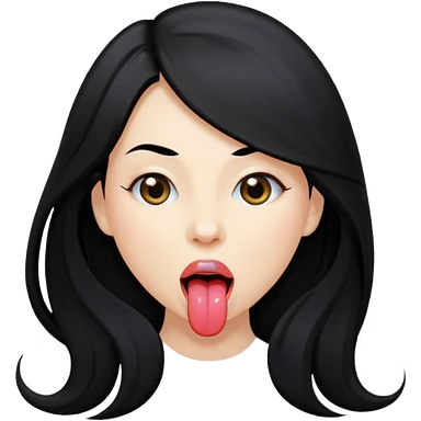 femme longs cheveux noire peau claire qui en tirant la langue emoji