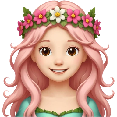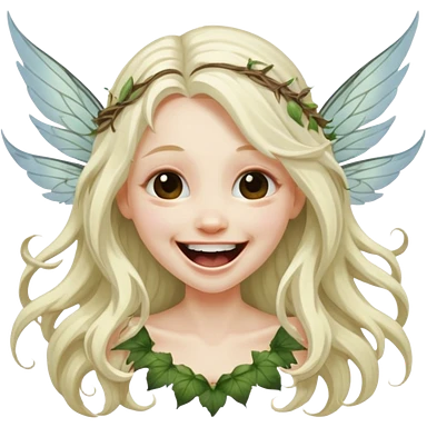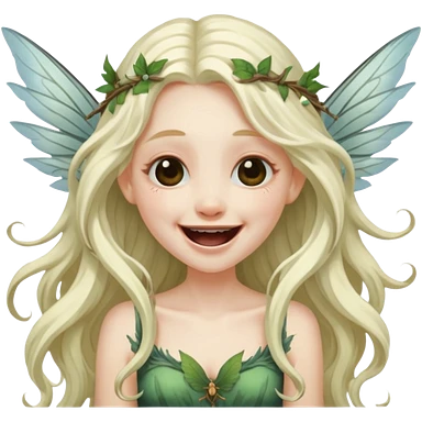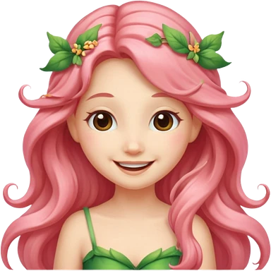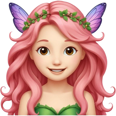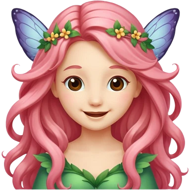 Fee femme avec des cheveux très long roux, yeux marrons belle comme une déesse avec un beau corps qui a de la magie tout autour d’elle emoji