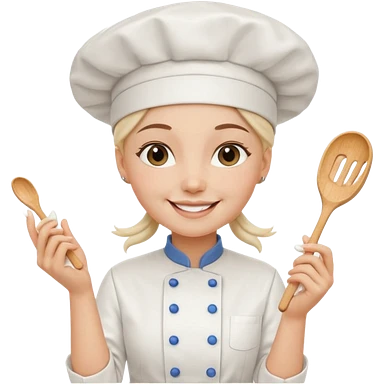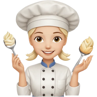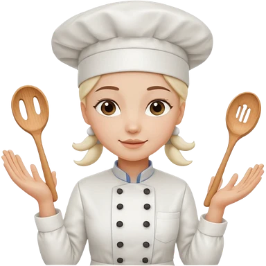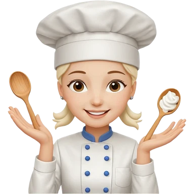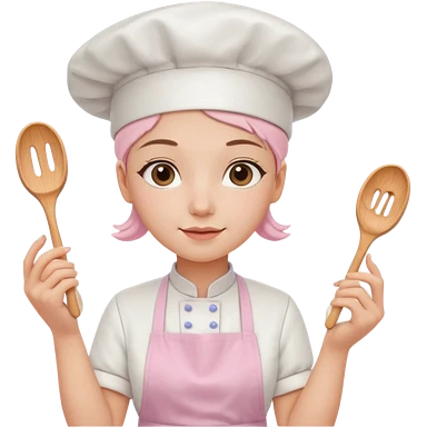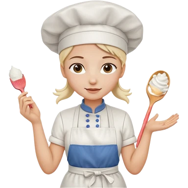 Female Baker with chef jacket holding a whisk in hand emoji | AI Emoji Generator