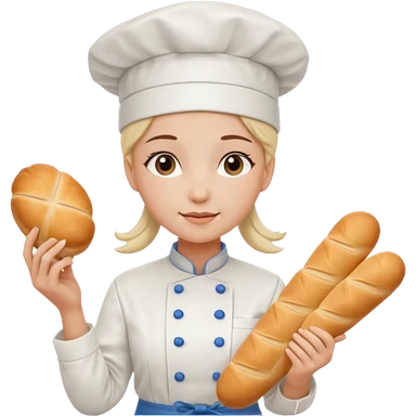 Young female baker – wearing white chef hat, holding a piping bag emoji