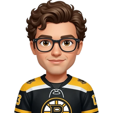Female boston bruins with glasses and bangs emoji | AI Emoji Generator