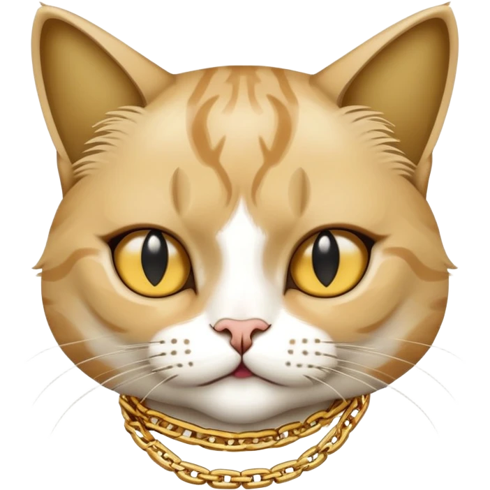 female cat named Cleo, cool and aloof, Run DMC hip-hop vibes, wearing gold chains emoji | AI Emoji Generator