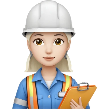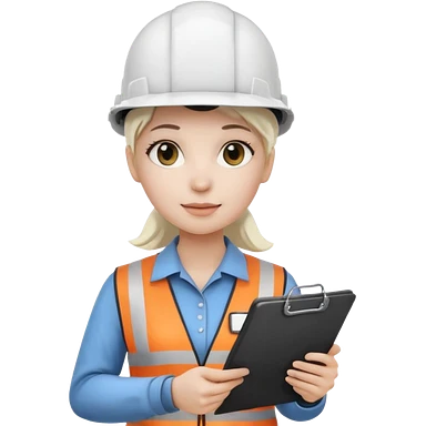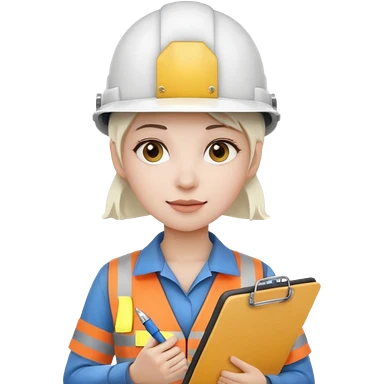 Female civil engineer with long black hair wearing white helmet and an orange safety vest looking at big drawing plan on her hand emoji | AI Emoji Generator