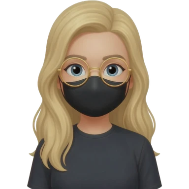 A dentist with long blond hair and round Golden eyeglasses, she uses a black mask emoji