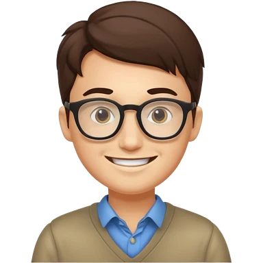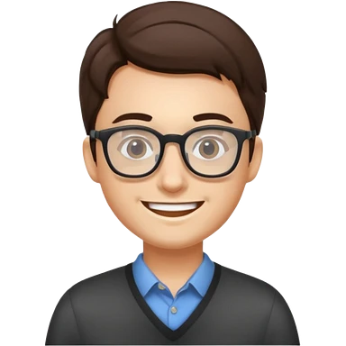 character with lightly tanned fair skin, She is wearing wayfarer-style glasses with a black upper frame and has small gold hoop earrings. The character is a female IT developer brown hair,blue eyes. Her dark brown hair working with a MacBook emoji