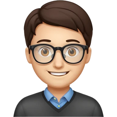 character with lightly tanned fair skin, She is wearing wayfarer-style glasses with a black upper frame and has small gold hoop earrings. The character is a female IT developer with long,blue eyes. Her dark brown hair She is shown working with a MacBook emoji