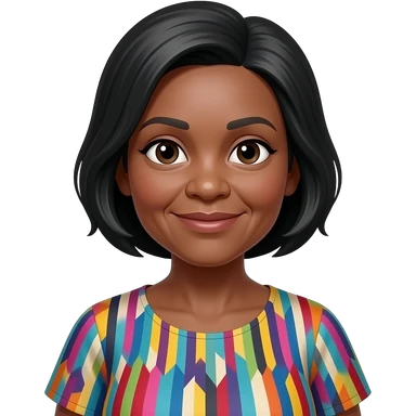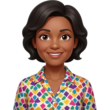female, early 60s, round face, african decent, clourful blowse top in emoji