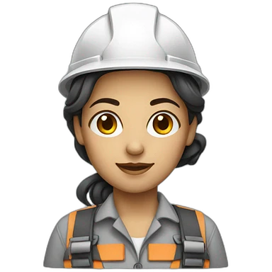 Female civil engineer with long black hair wearing white helmet and an orange safety vest looking at drawing plan on her hand emoji