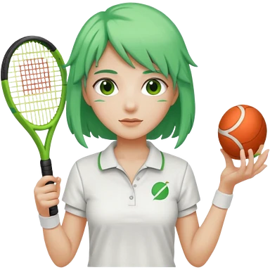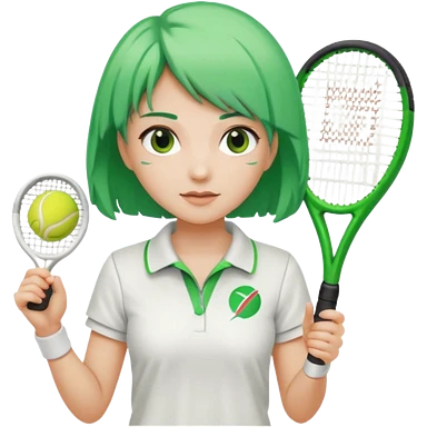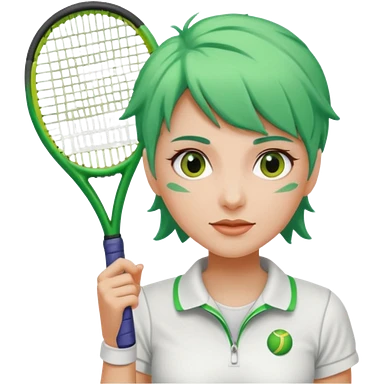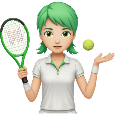 female, green haired, white clothes, tennis player emoji