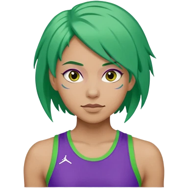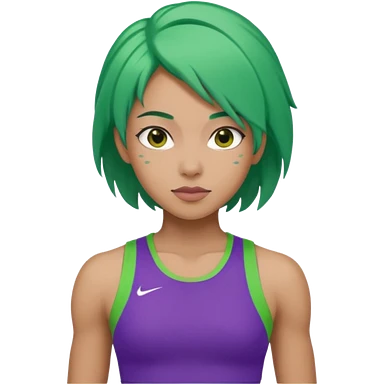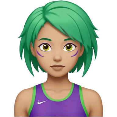 female, green haired, purple clothesathlette emoji | AI Emoji Generator