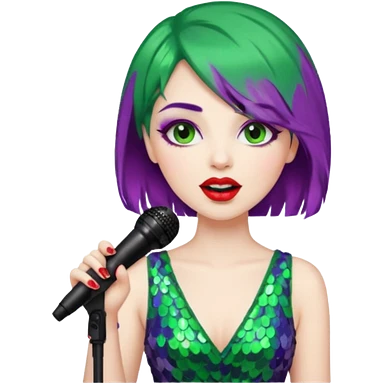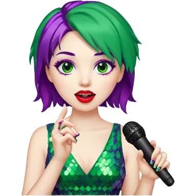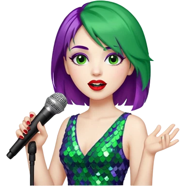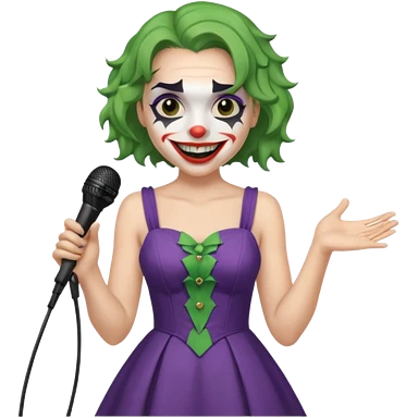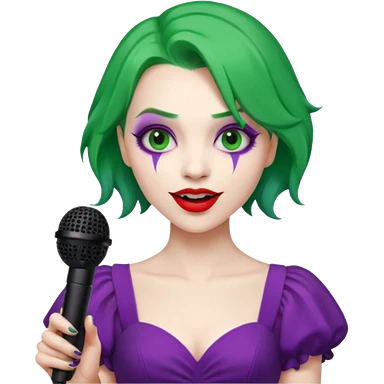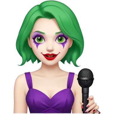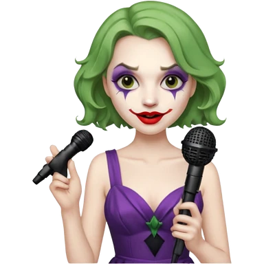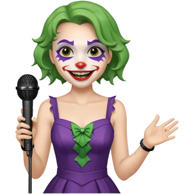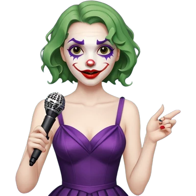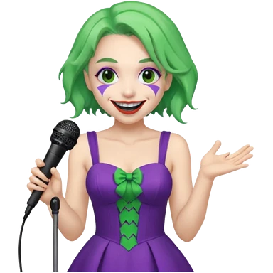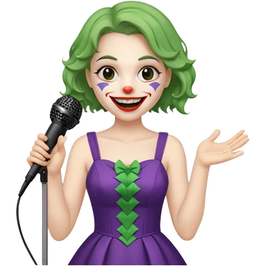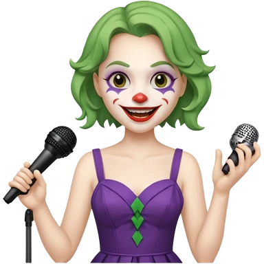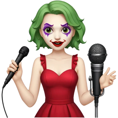female joker with dress, microphone, singing emoji | AI Emoji Generator