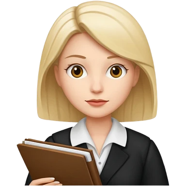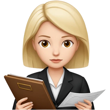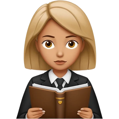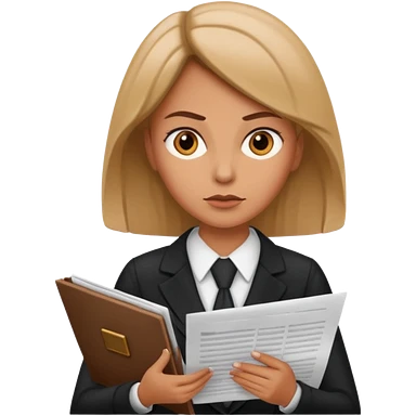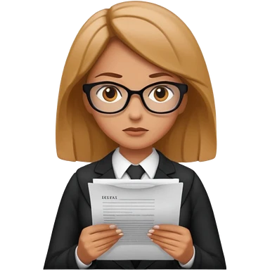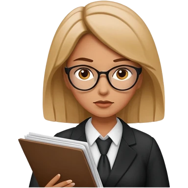 female lawyer emoji, wearing suit and tie, holding scales of justice emoji