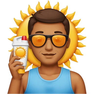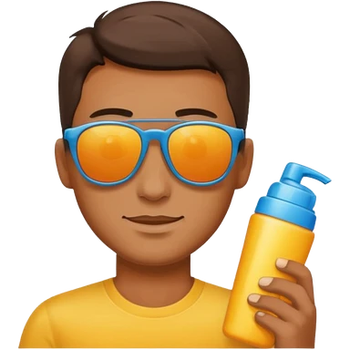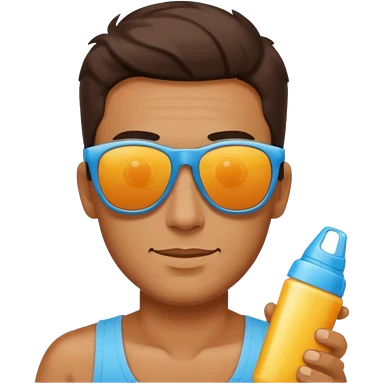 male brunet suncream bottle and sunglasses, with sun burned emoji