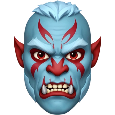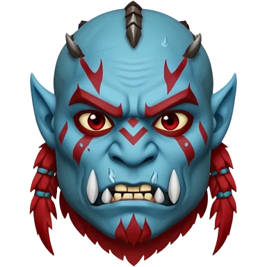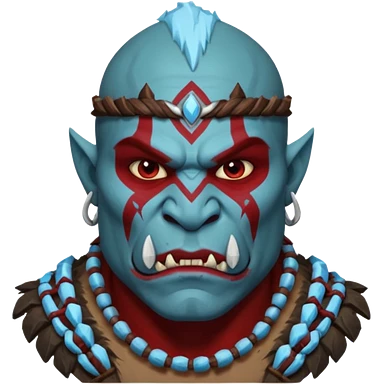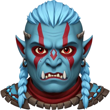 Fantasy orc portrait emoji, icy blue and deep red frost war paint on face, brutal winter warrior mood, strong facial features, minimal tribal design, clean high readability emoji style, male/female variant emoji