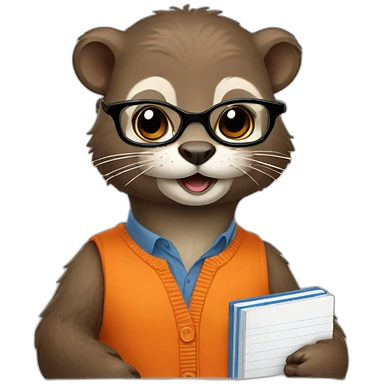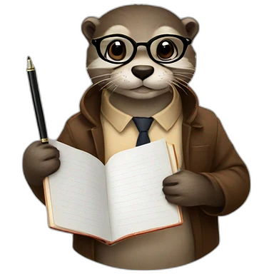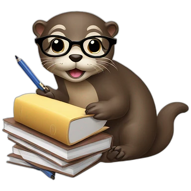 female Otter with round glasses holding a couple journals and a pen emoji | AI Emoji Generator