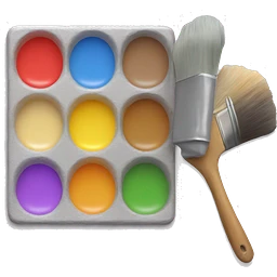 female painter with palette smeared with paint and a brush emoji | AI Emoji Generator