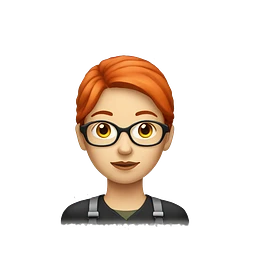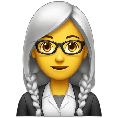 female programmer sitting inform of pc brown straight hair and blue eyes, white skin emoji