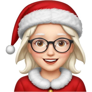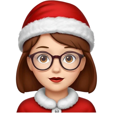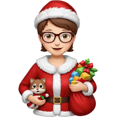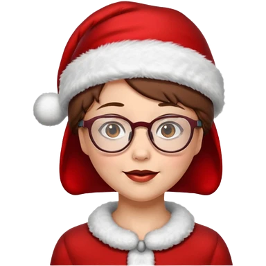 female Santa Claus with glasses with brown short hair emoji | AI Emoji Generator