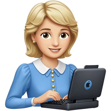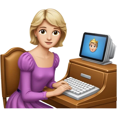 Exhausted, white, female doctor with strawberry blonde hair typing notes at her desk emoji