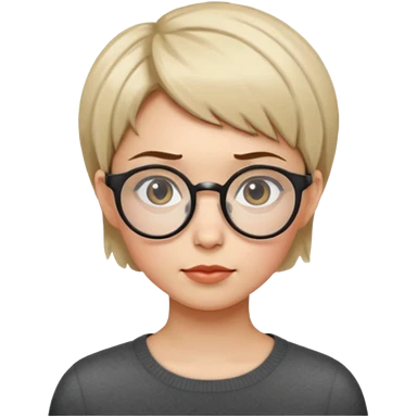 female, short curly white hair, old, wrinkles, glasses, big round visible ears, marked scar cheek, green eyes, emoji