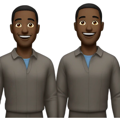 Bald man smiling with glasses and big bushy blac beard with. Wearing a white shirt and a blue coat emoji