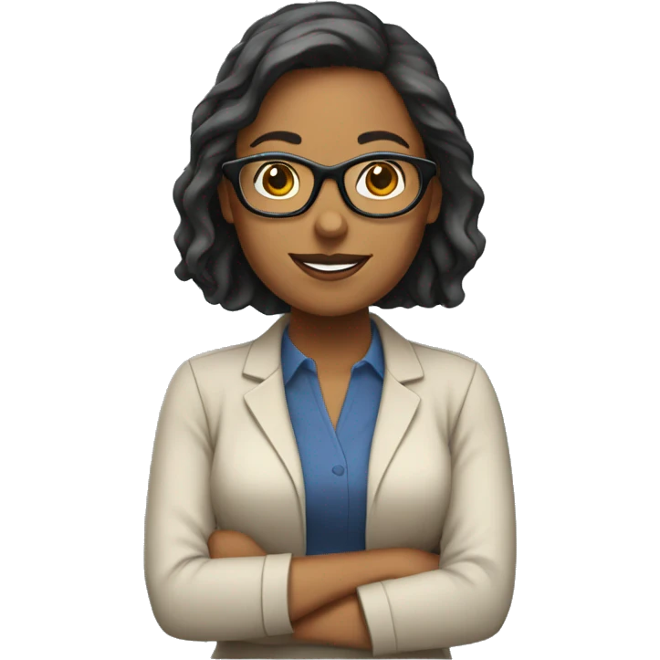 female teacher with semi-wavy black hair, light skin tone, wearing glasses emoji
