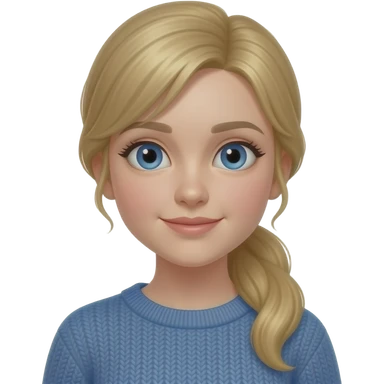 Female, teen, blonde hair, ponytail, blue eyes, blue sweater emoji