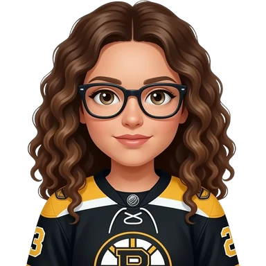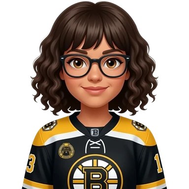 Female boston bruins with glasses and bangs curly hair emoji