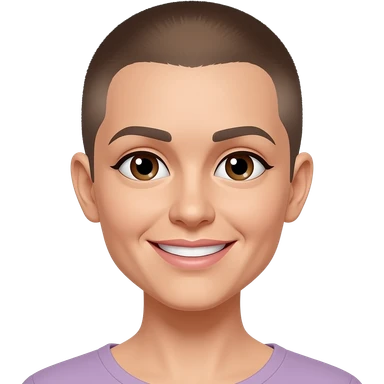 late 30's female with very short cropped hair and brown eyes, nice smile emoji