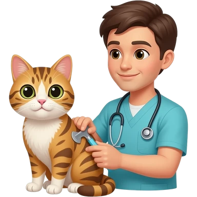 Young female vet – scrubs, gloves, examining kitten. emoji
