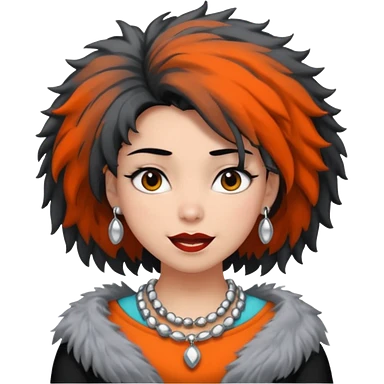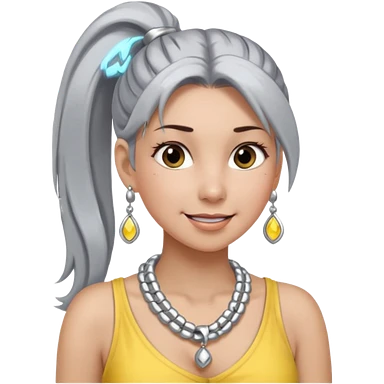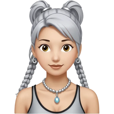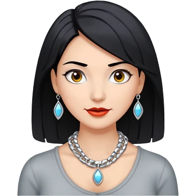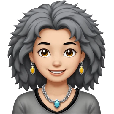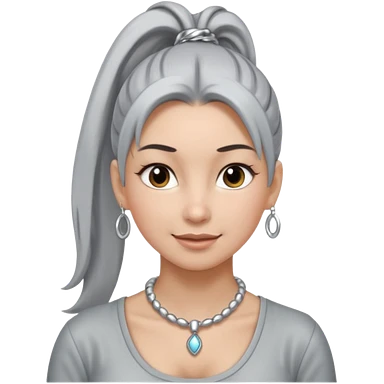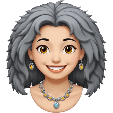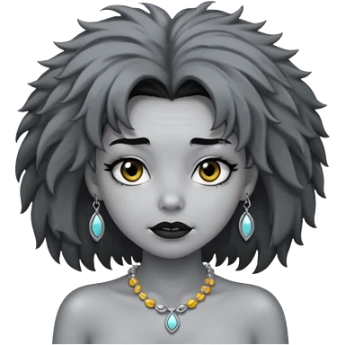 Female with Silver Necklace, grey skin,long hair, more bright silver, different expressions. emoji | AI Emoji Generator