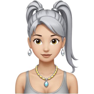Female with bog Silver Necklace, grey skin,ponytail hair, more bright silver,highlight necklace, different expressions. emoji