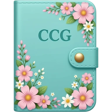 feminine aqua-colored journal with flowers on the cover and the initials CCG emoji