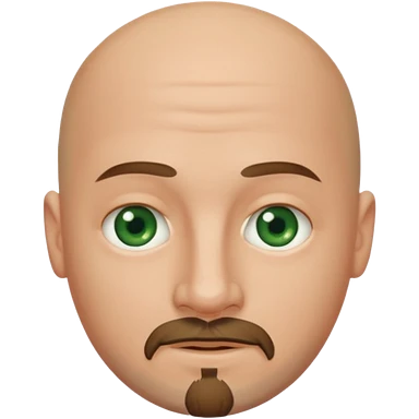 white caucasian bald man's face, with brown goatee and green eyes, oval face, rounded, big emoji