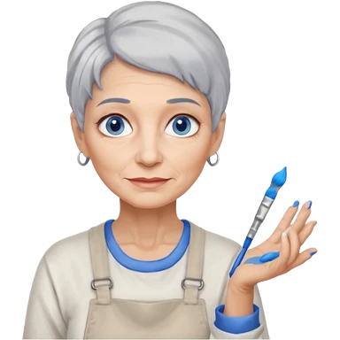FEMME 65 ET PLUS CHEVEUX GRIS, YEUX BLEU ARTISTE PEINTRE emoji
