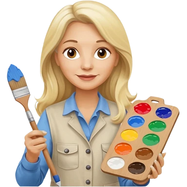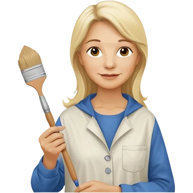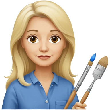 FEMME 55 ANS ET PLUS BLONDE CHEVEUX LONG ARTISTE PEINTRE AVEC UN PINCEAU emoji