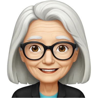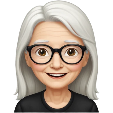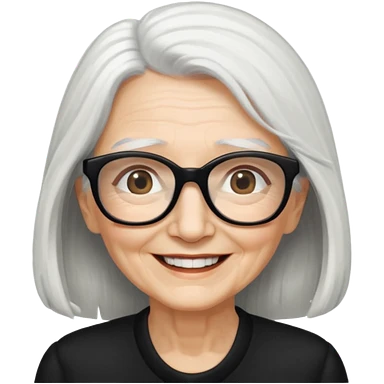 femme ridée avec de long cheveux blanc et des lunettes rectangles noir sourrir emoji
