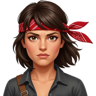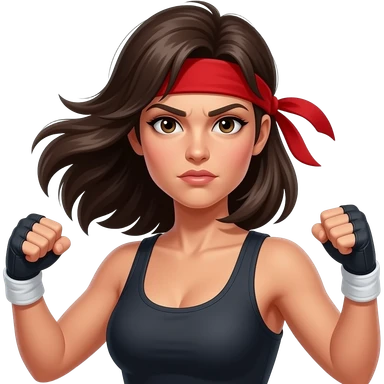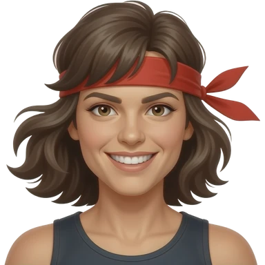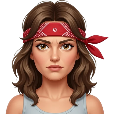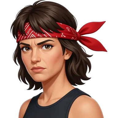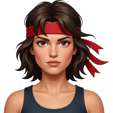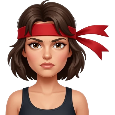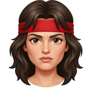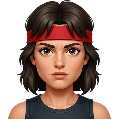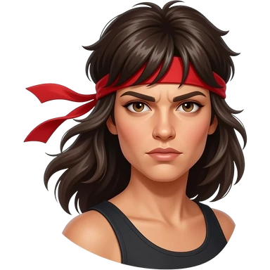femme avec un bandeau rouge autour du front déterminé comme rambo le bandeau au vent emoji | AI Emoji Generator