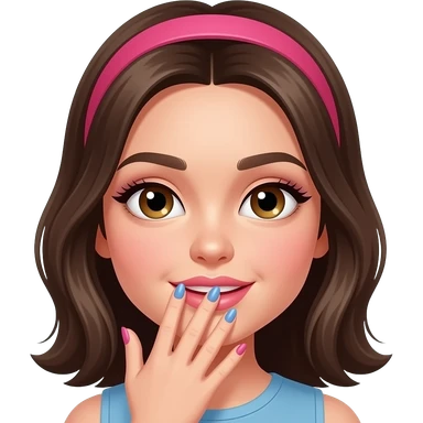 Fille maquillée avec ongles fait main à la bouche emoji