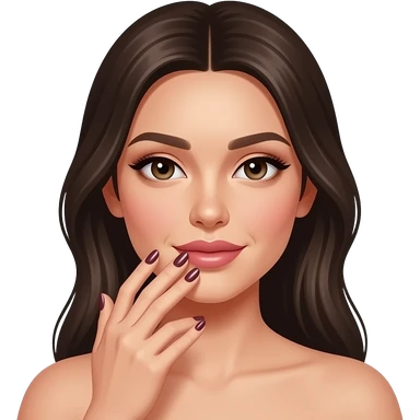 Femme bien maquillée avec ongles fait main à la bouche emoji